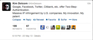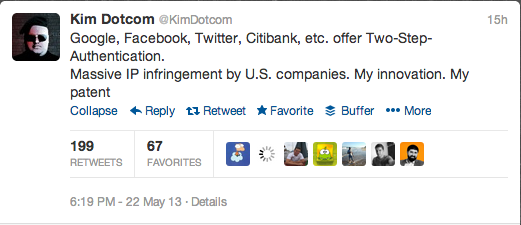 Kim DotCom tweet – two-step authentication my patent