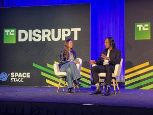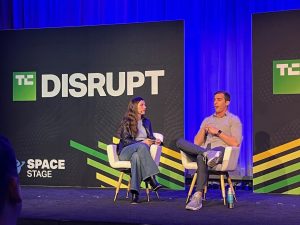 William Bruey (right), CEO of Varda Space, talked with Aria Alamalhodaei about space tech during TechCrunch Disrupt.