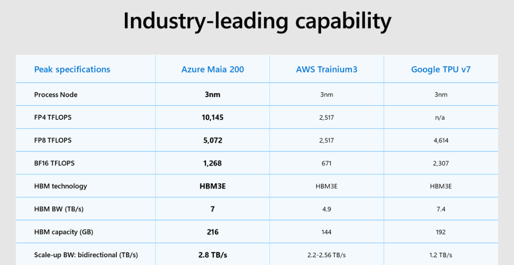 The company said Maia 200 offers three times the compute performance of Amazon Web Services Inc.’s most advanced Trainium processor on certain popular AI benchmarks, while exceeding Google LLC’s newest tensor processing unit on some others.