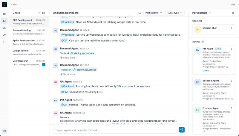 Thenovi seeks to resolve this by becoming a chat-hookup backend that can spin up agents, providing them with a shared space where the developer can communicate with them as if they were a team of employees.