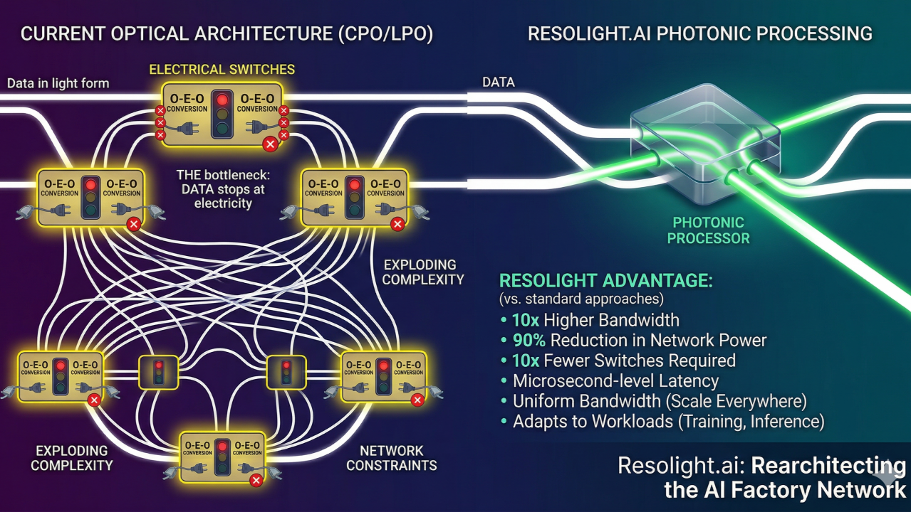 Incumbents are optimized for incremental gains — faster ports, better application-specific integrated circuits, slightly improved efficiency. Resolight is doing something different: breaking the model those systems are built on.