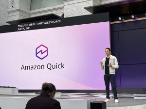 Jigar Thakkar of AWS spoke about Amazon Quick at the briefing for media and analysts in San Francisco.
